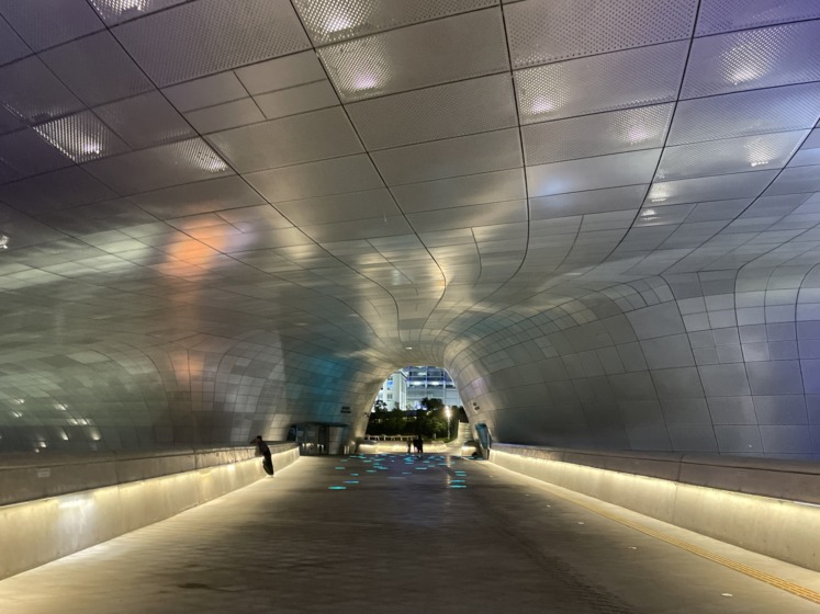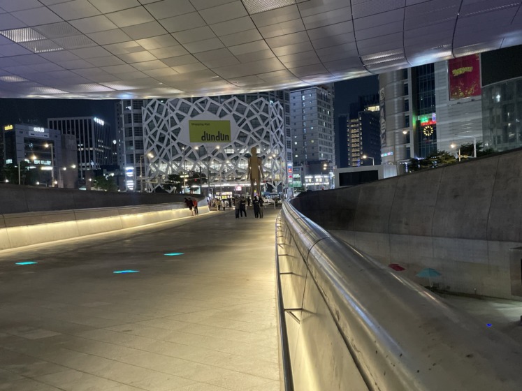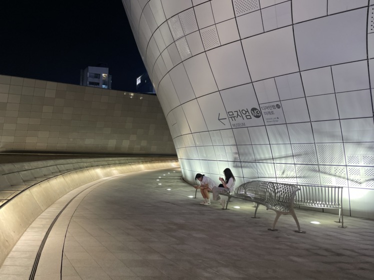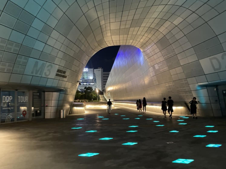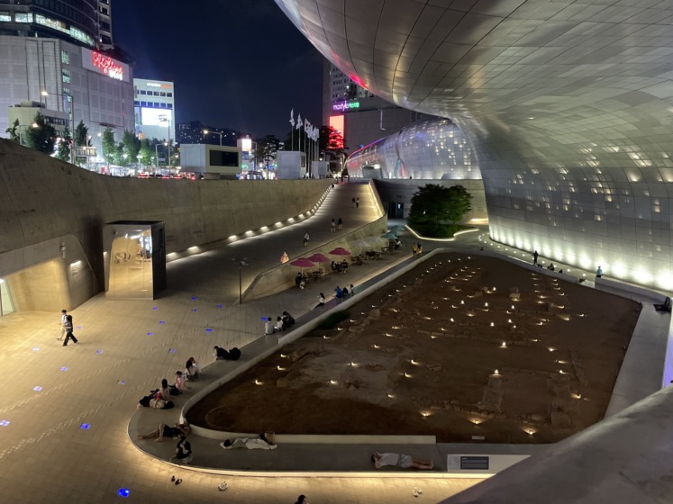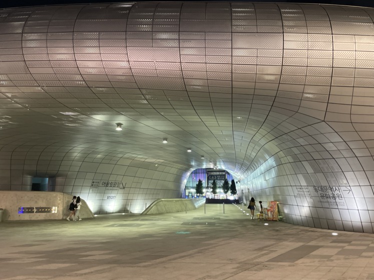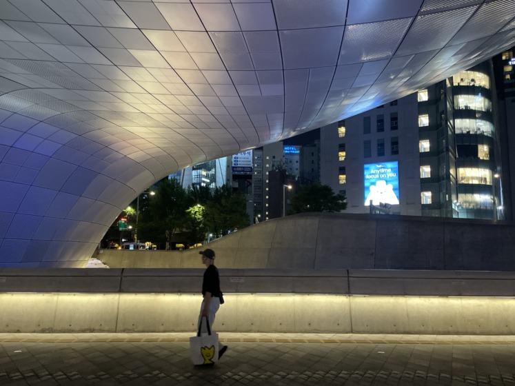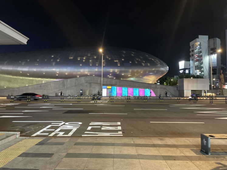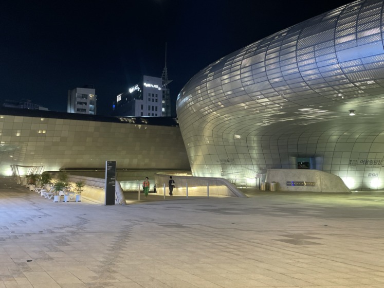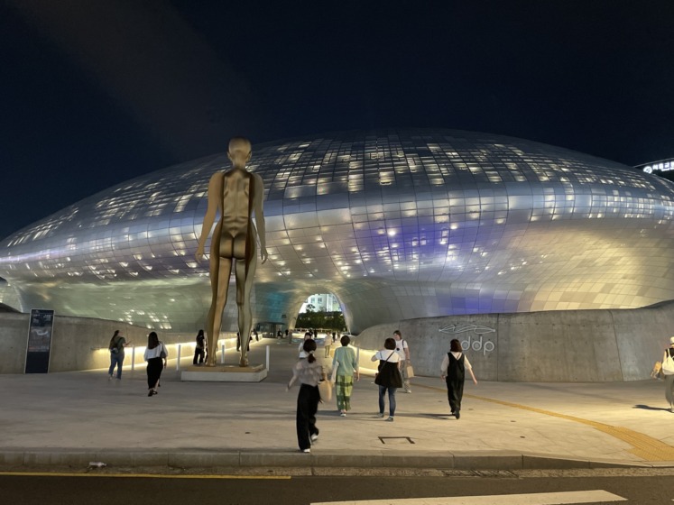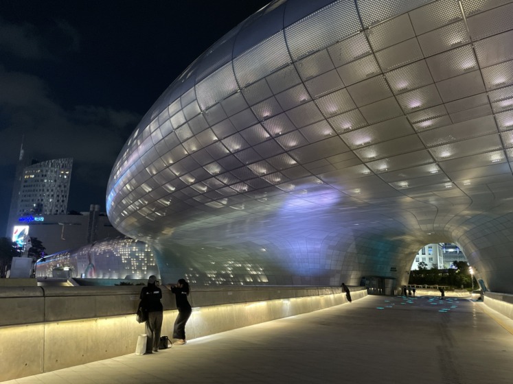 ソウルの街中に、巨大な宇宙船が降り立ったようなインパクト大な施設。