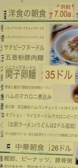 私たちは、隣のおば様が食べていて美味しそうだった「ハムエッグヌードル」を注文しました。