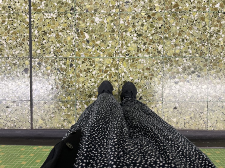 高層マンションも地下鉄もタイルが多いですが、街中では石も多く使われていました。
