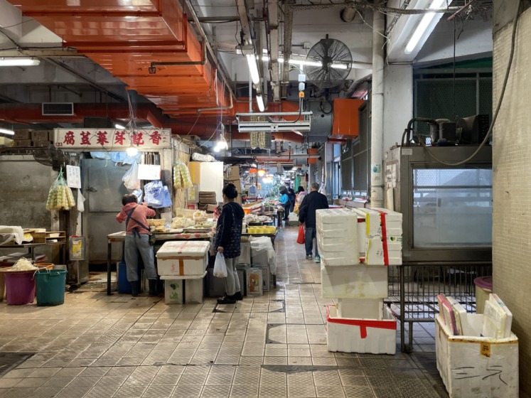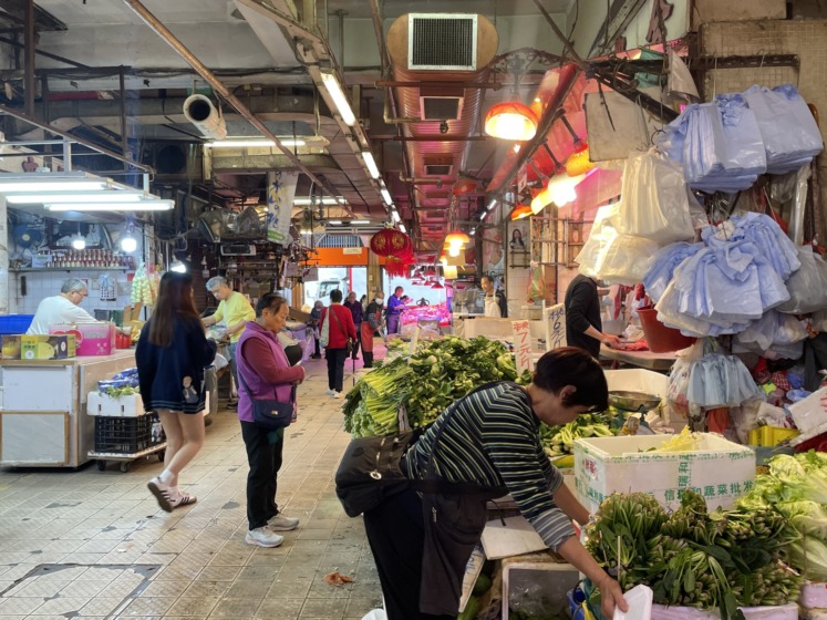 九龍の下町にある問屋街「深水埗」、市場の上にある朝飲茶に行きました。